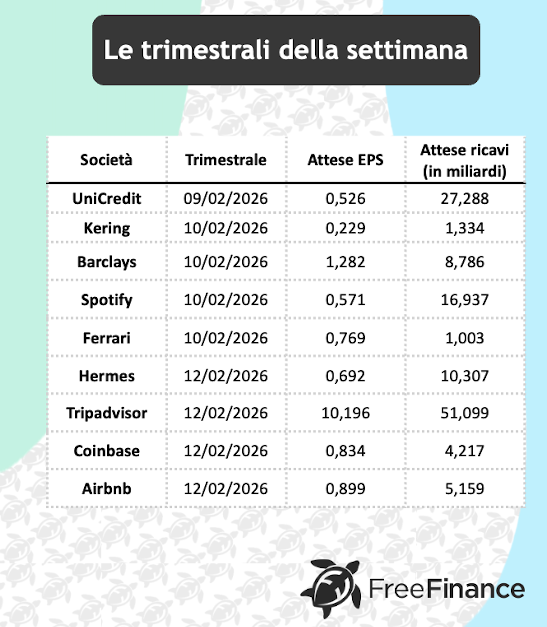 Le trimestrali della settimana