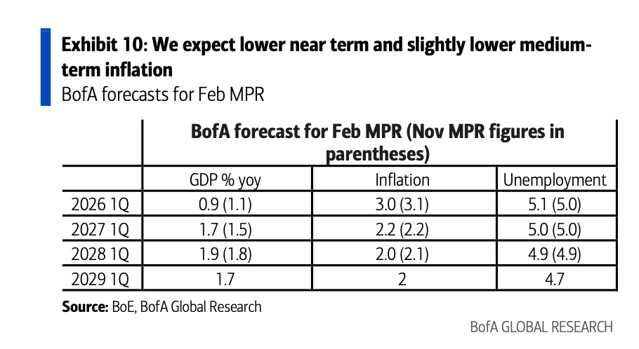 La BoE potrebbe rivedere l’inflazione del primo trimestre 2026 dal 2,3% al 2,9% e quella dell’intero anno dal 2,8% al 2,4%. Il CPI del 1° trimestre 2028 e del 1° trimestre 2029 dovrebbero essere attesi al 2%. La crescita economica a breve termine potrebbe invece essere spinta di 10-20 punti base.