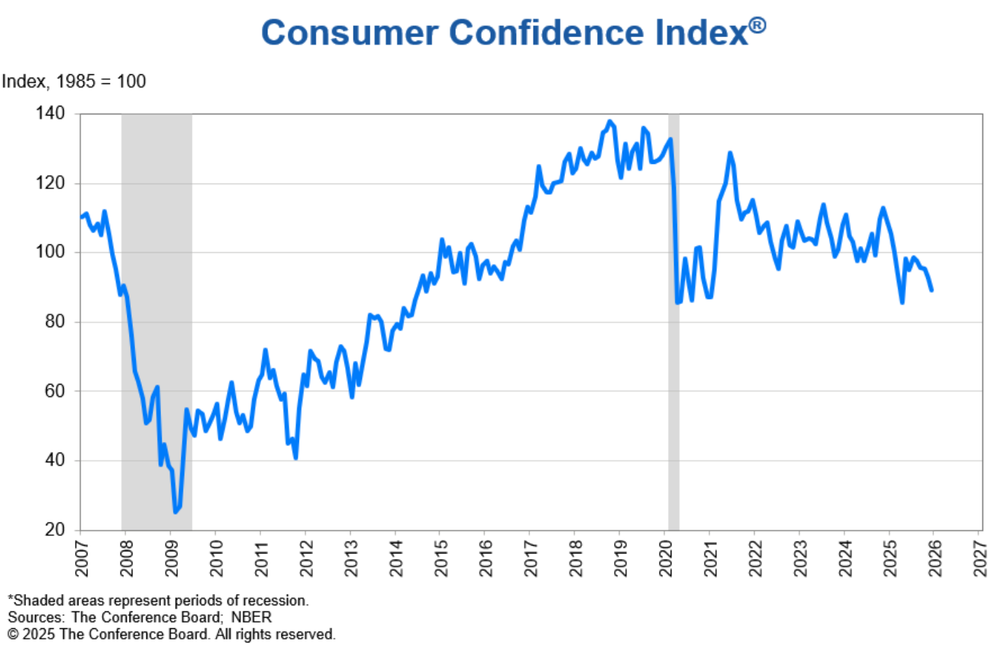 In generale, i consumatori continuano ad essere preoccupati per l’inflazione, i dazi e la politica.
