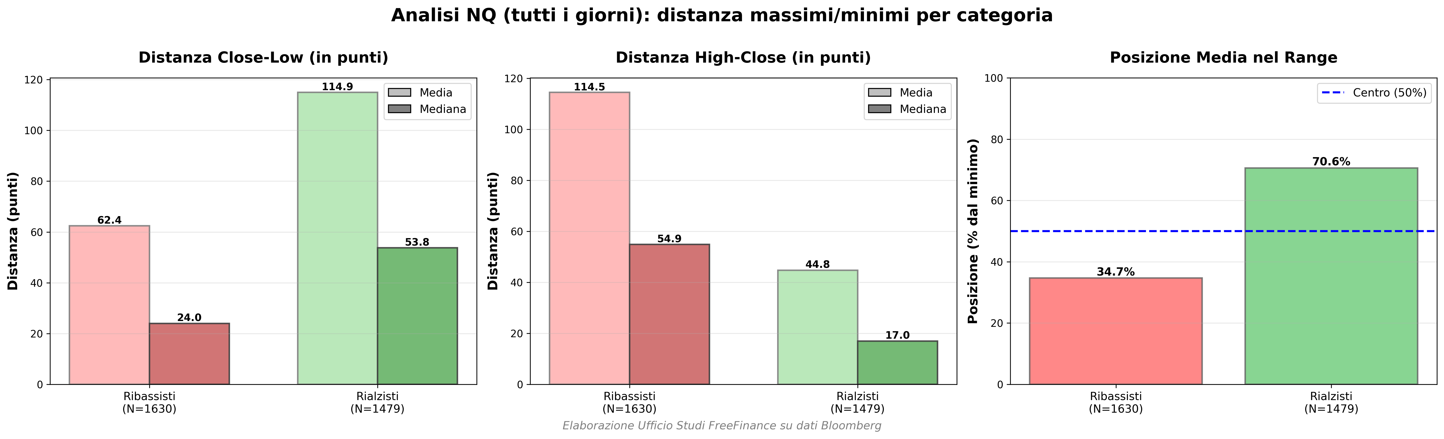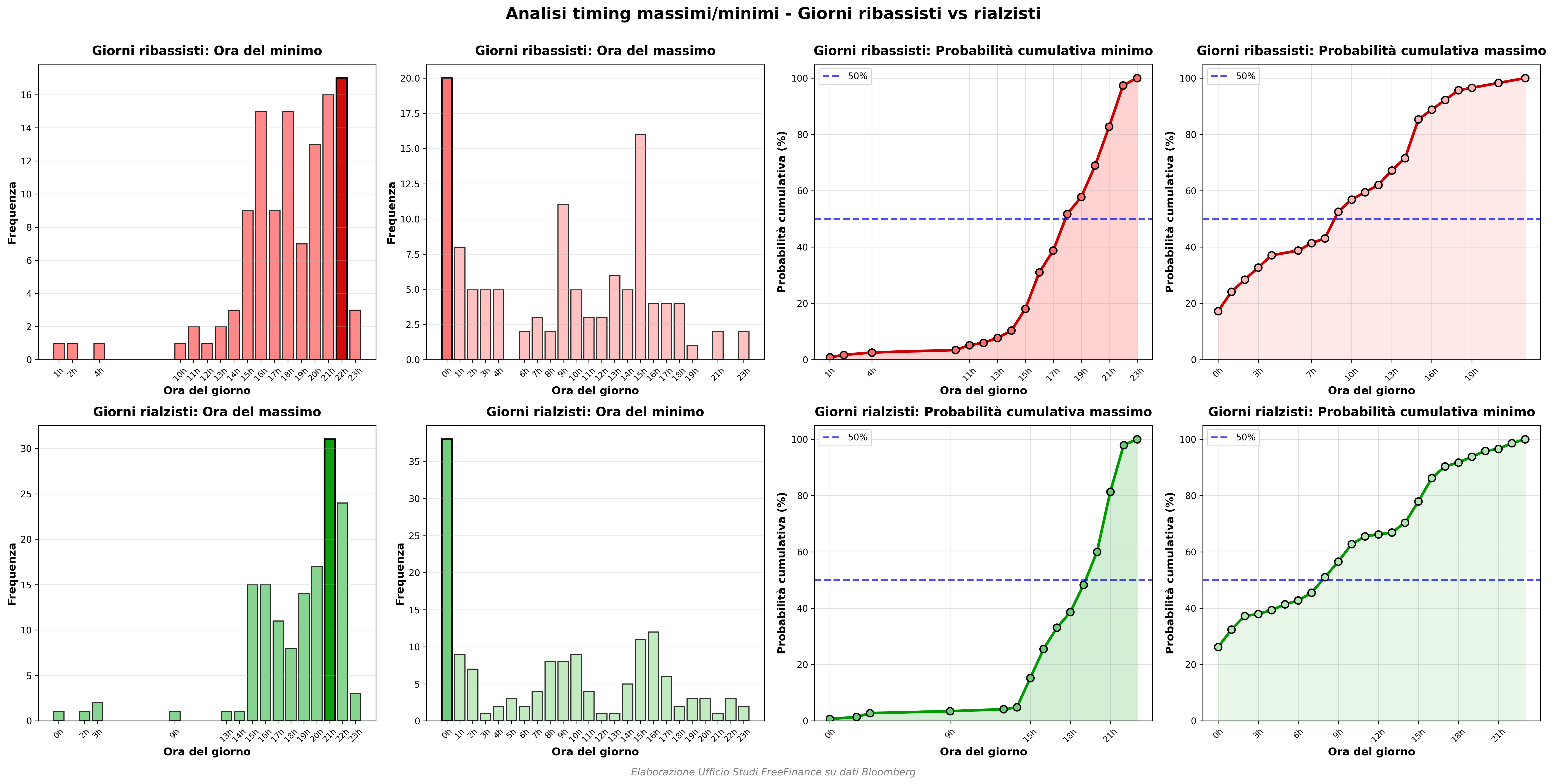 - Nei giorni ribassisti, attenzione alle 18:00: in questa fascia si forma il minimo nel 77,8% dei casi → chiudere short o valutare ingressi contrarian