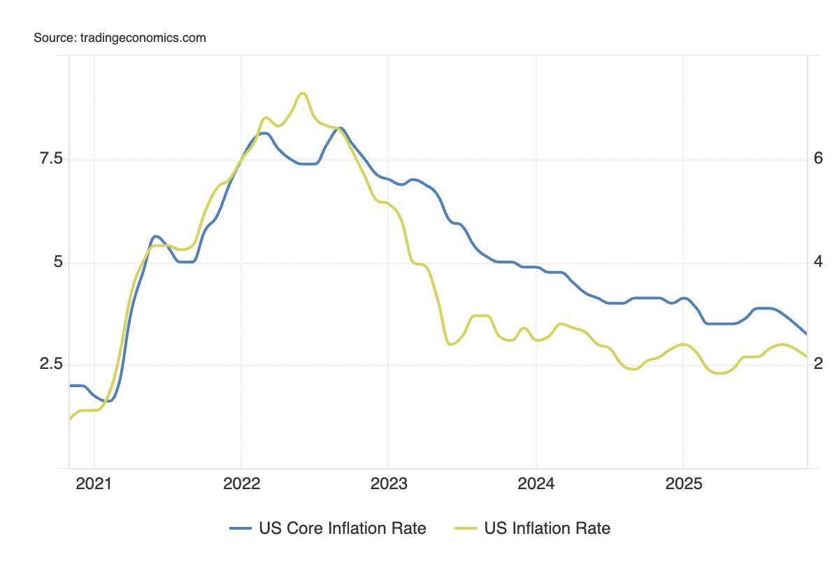 A novembre, l’inflazione headline USA si è attestata al 2,7%, ben al di sotto delle attese Bloomberg al 3,1% su base annuale. Il dato core si è invece attestato al 2,6%, anche in questo caso meno del consensus al 3%.