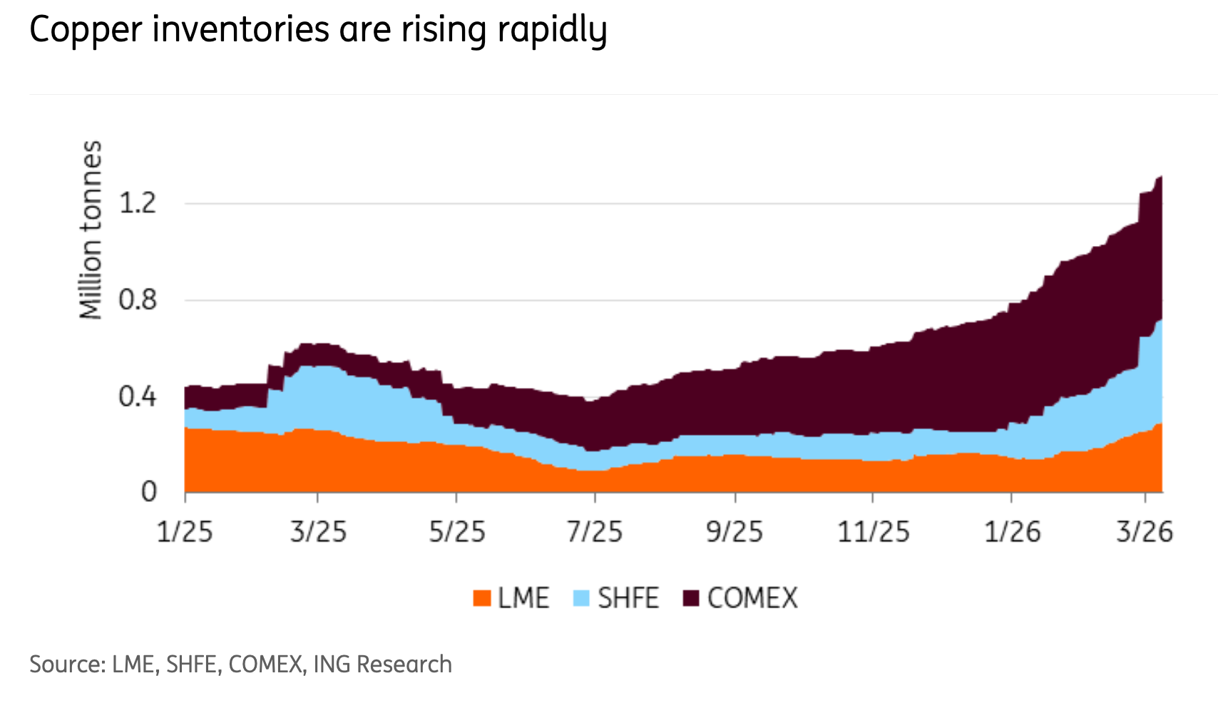 Per ING tutto questo sta ad indicare che l’equilibrio nel mercato del rame sta cambiando.