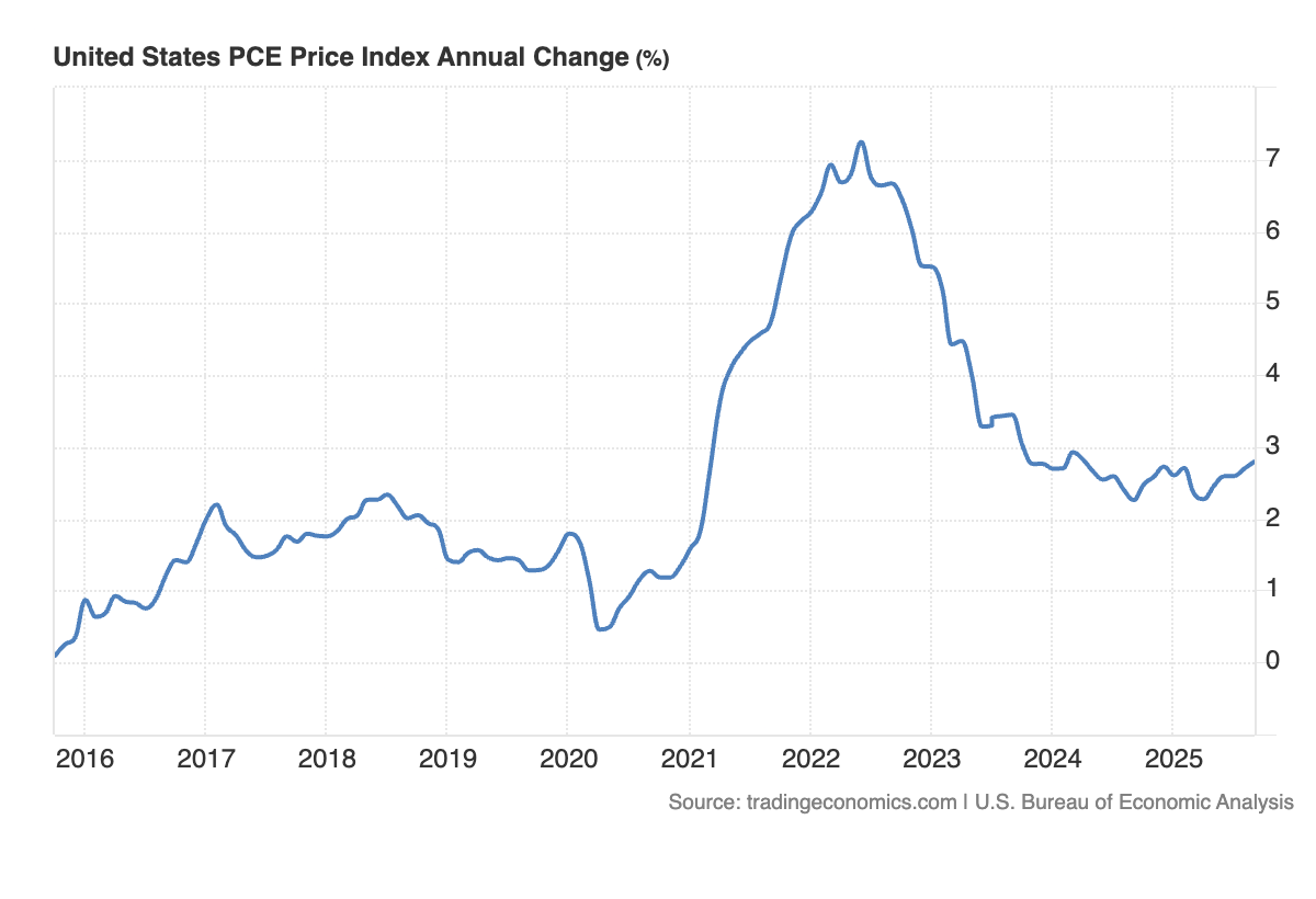 A settembre, il PCE si è attestato al 2,8% su base annuale, in linea con le attese degli analisti censiti da Bloomberg e sopra il 2,7% precedente. La misura core è passata dal 2,9% al 2,8%, anche in questo caso in linea con le previsioni.
