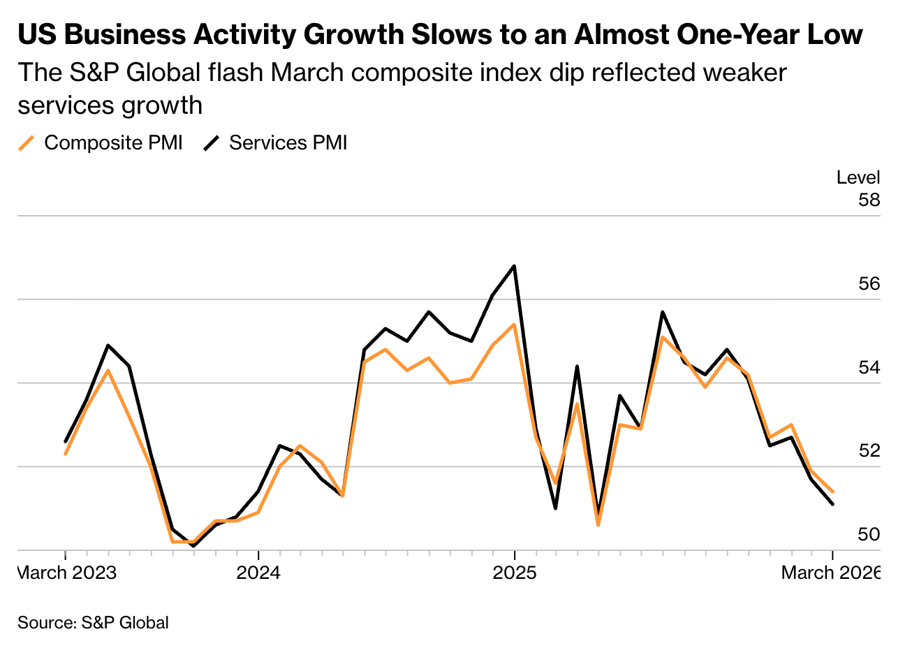 A marzo (preliminare) l’S&P Global PMI manifatturiero si è attestato a 52,4 punti, quello sui servizi a 51,1 punti e quello composito a 51,4 punti, confrontandosi con le attese Bloomberg a 51,5, 52 e 519 punti e con i precedenti 51,6, 51,7 e 51,9 punti.