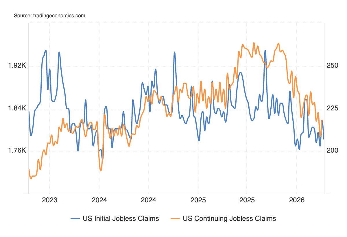 Nelll’ultima settimana, le richieste di sussidi di disoccupazione USA si sono attestate a 207mila unità, sotto le attese Bloomberg a 213mila unità e le precedenti 218mila (rivisto da 219mila). La media a 4 settimane è passata da 209,25mila a 209,75mila unità.