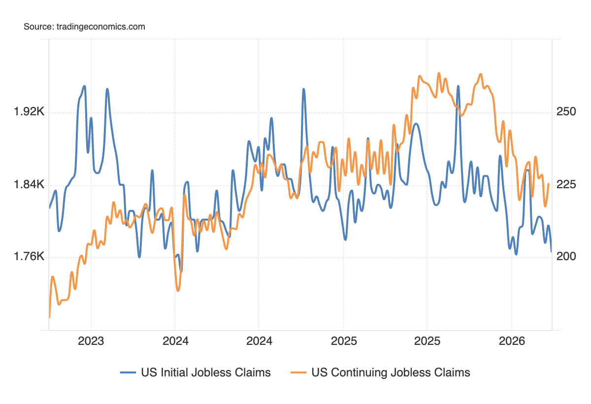 Nell’ultima settimana, le richieste di sussidi di disoccupazione si sono attestate a 202mila unità, sotto le attese Bloomberg a 212mila unità e le precedenti 211mila (rivisto da 210mila). La rilevazione è scesa intorno ai minimi degli ultimi 2 anni. La media a 4 settimane è scesa da 210,75mila a 207,75 mila unità.