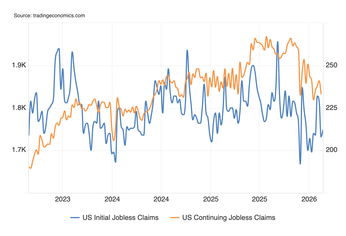 Nella settimana del 14 febbraio, le richieste continue sono state 1,833 milioni, meno del consensus a 1,858 milioni e le precedenti 1,864 milioni (rivisto da 1,869 milioni).