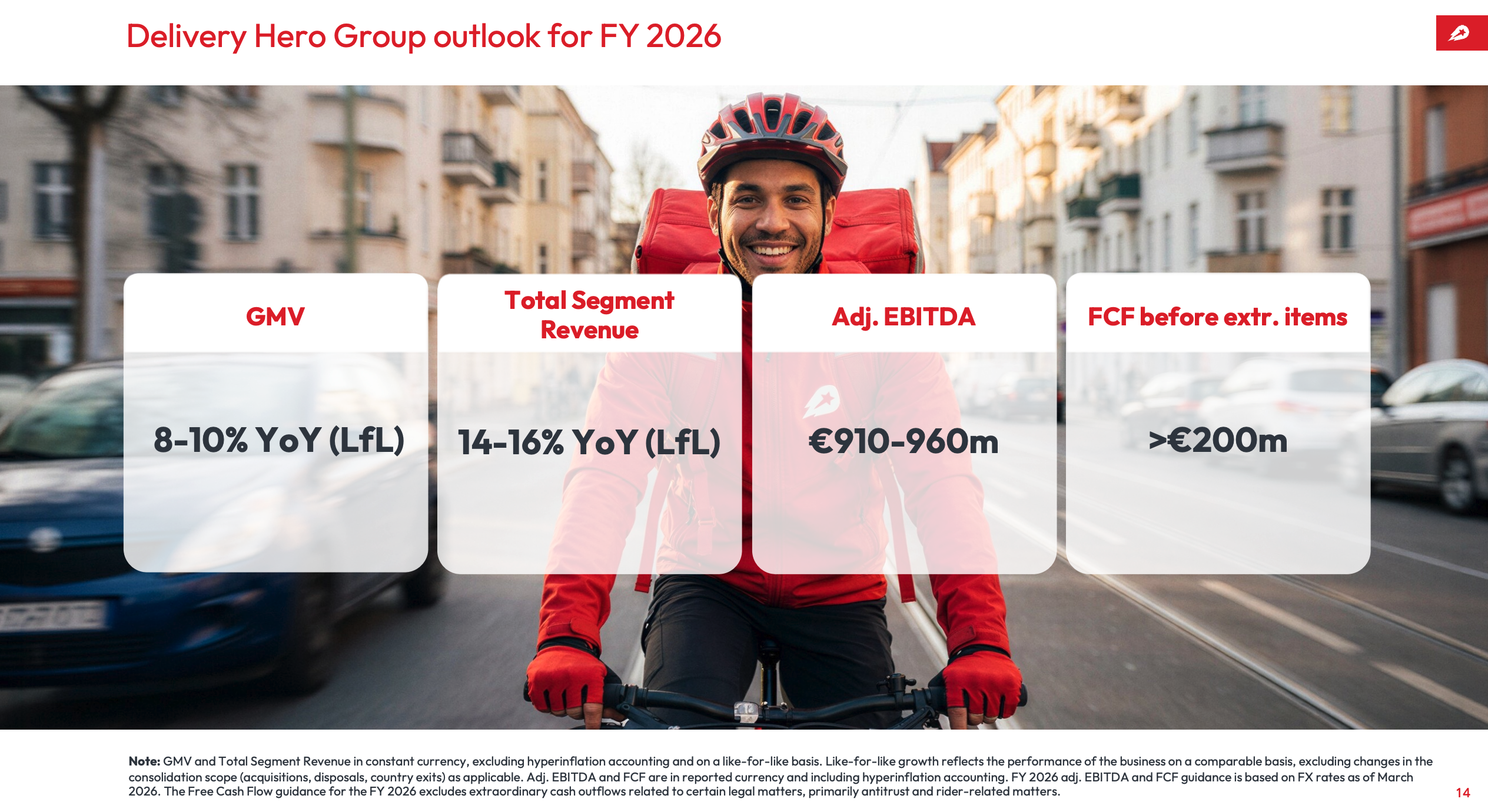 🔹Per il 2026, Delivery Hero vede un GMV in crescita dell’8%-10% su base annuale, un EBITDA adjusted tra 910 e 960 milioni di euro e un Free Cash Flow superiore a 200 milioni di euro