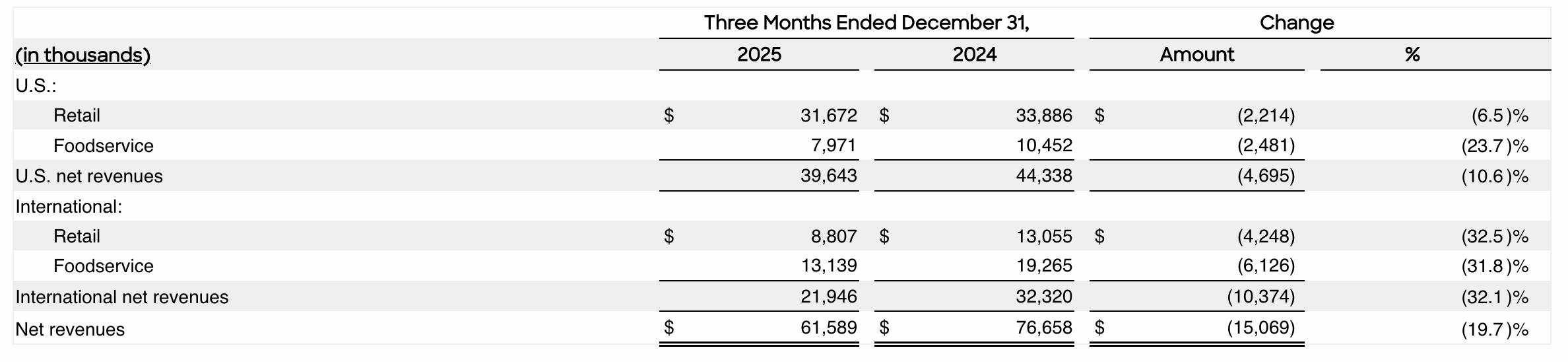 🔹Ricavi segmento Restaurant & Foodservice: 21,11 milioni di dollari, attese a 23,48 milioni (dati Bloomberg)