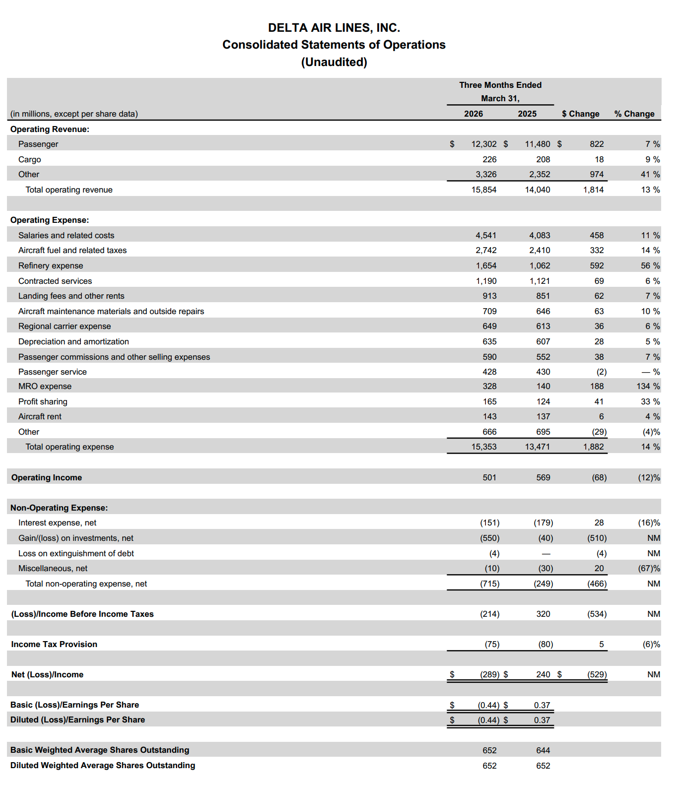 Trimestrale Delta Air Lines