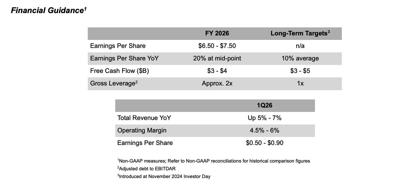 🔹Per il 1° trimestre 2026, la società si aspetta EPS tra 0,5 e 0,9 dollari, ricavi in crescita del 5%-7% e margine operativo del 4,5%-6%
