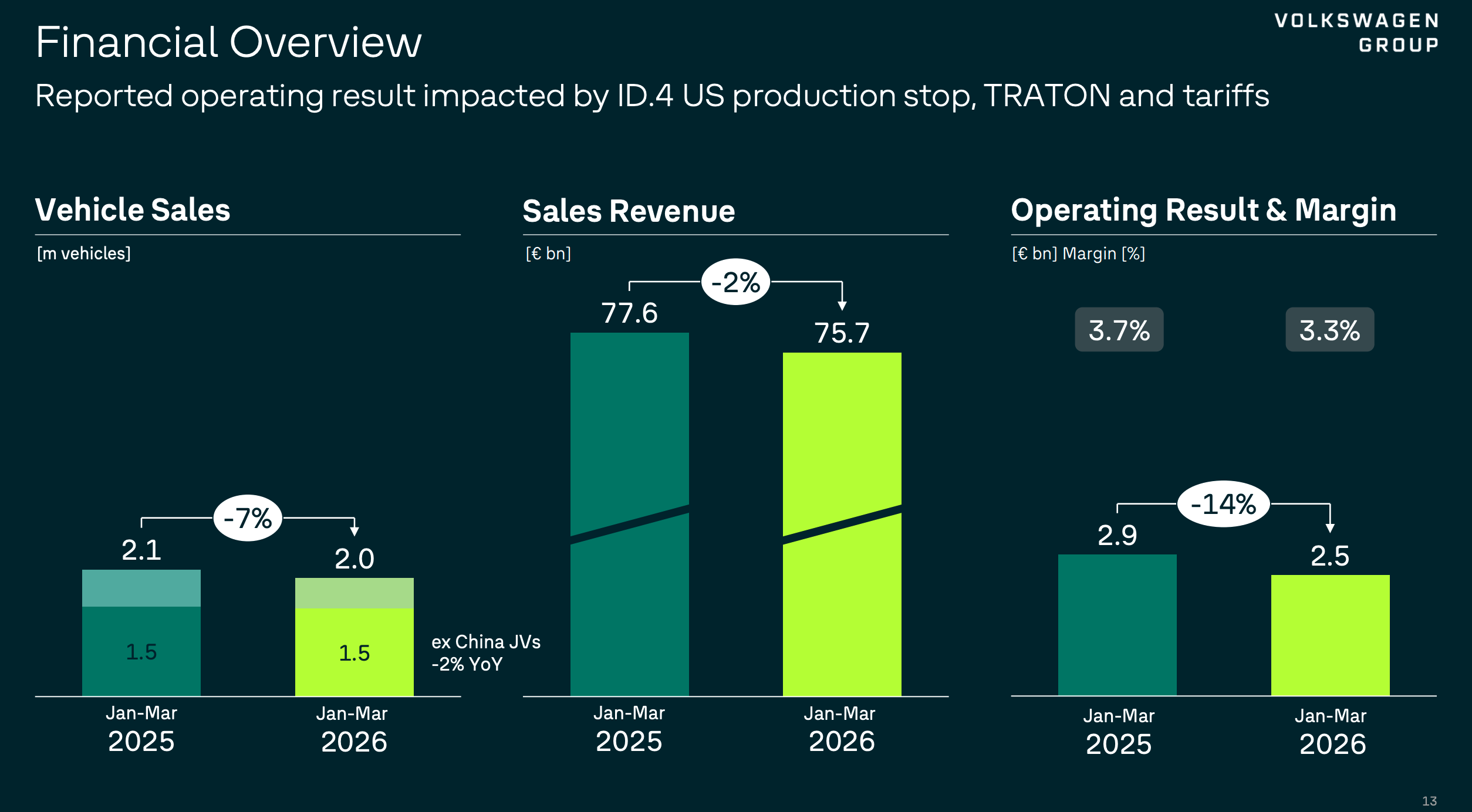 🔹I risultati includono oneri per 500 milioni di euro circa a causa dello stop alla produzione dell’unico veicolo elettrico VW fabbricato in USA